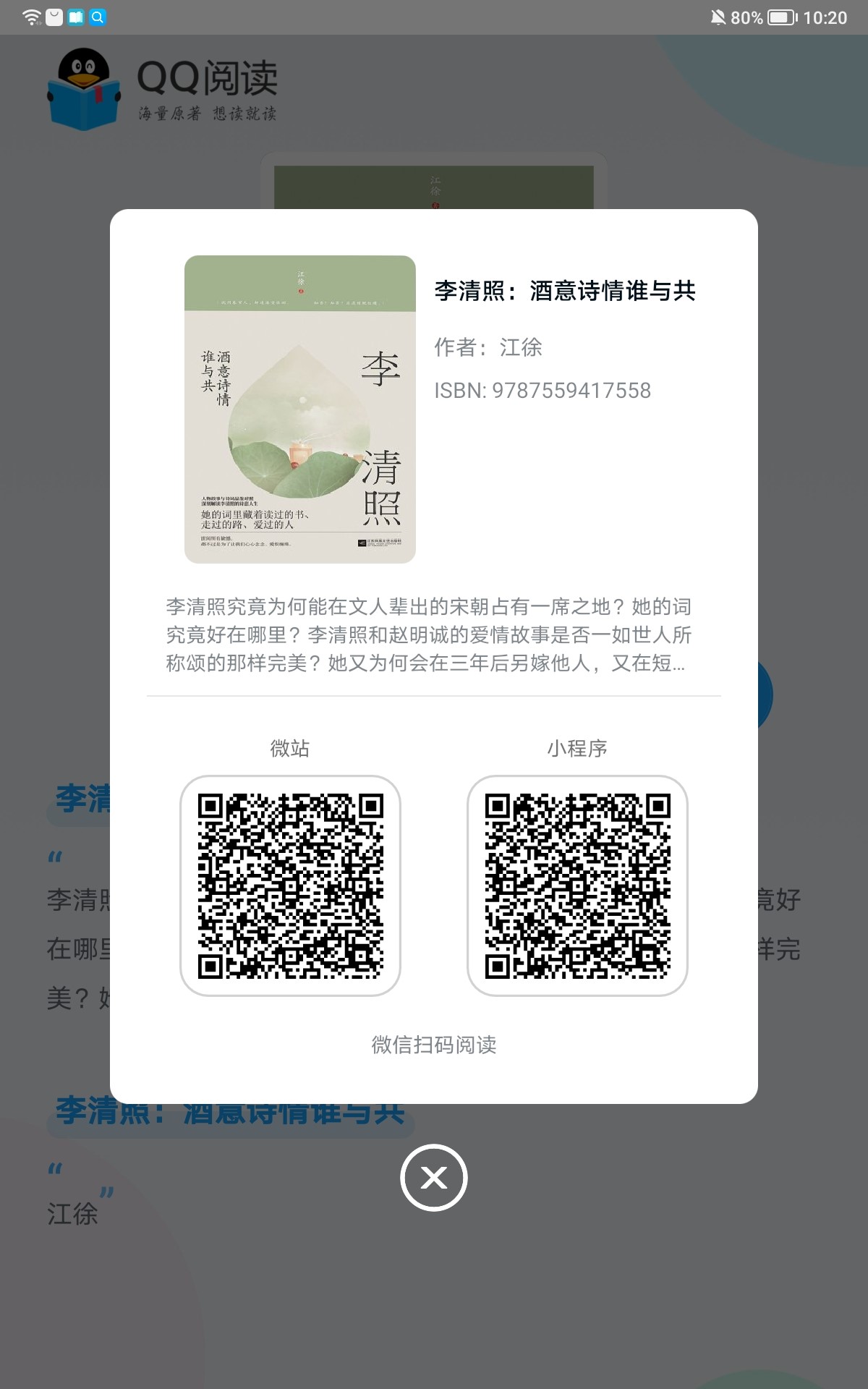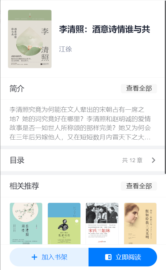 优质版权电子图书推荐,点击资源显示资源介绍和二维码,支持手机微信H5界面及小程序双扫码阅读,完美自适应各种手机屏幕大小,提供给读者最舒心的阅读和听书方式。